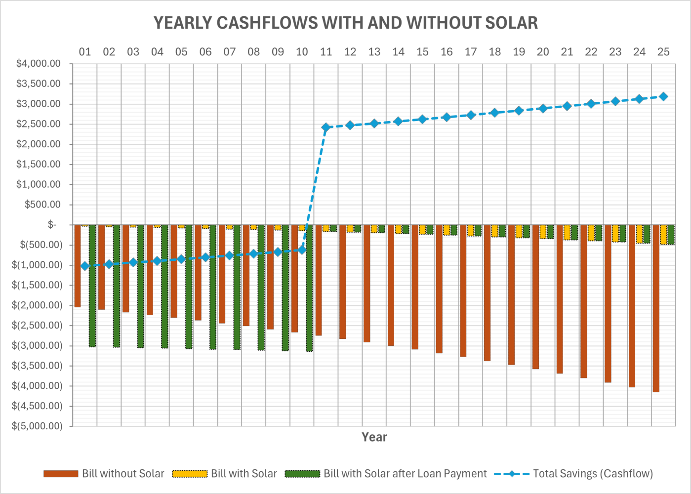 - Naturally, if additional incentives apply to your specific case, your savings and cash flow will improve, as well as your monthly or yearly repayment schedule. The project’s final total savings, net present savings, and IRR will consequently improve.